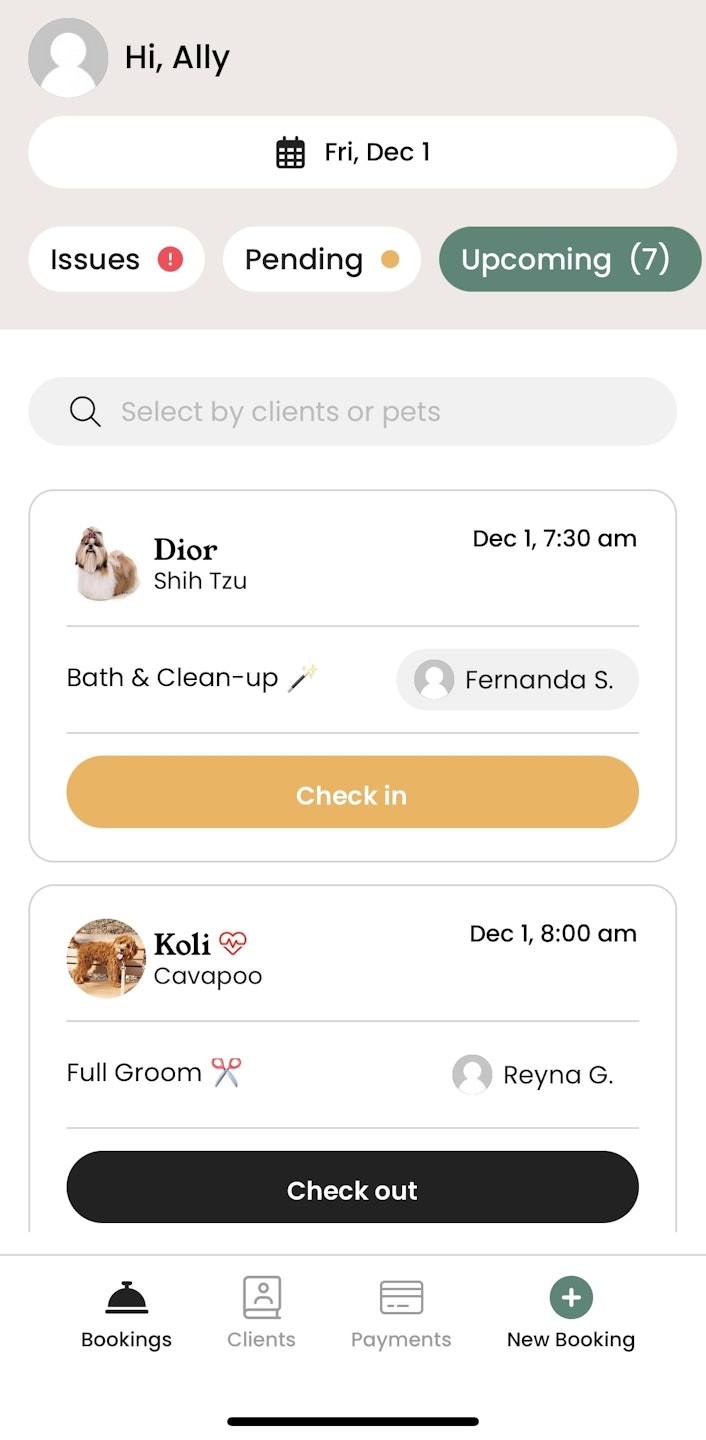 Developed by pet care pros for pet care pros. This companion app connects directly to your Cuddles Software account so you can schedule new appointments, manage your bookings, and process payments on the go!