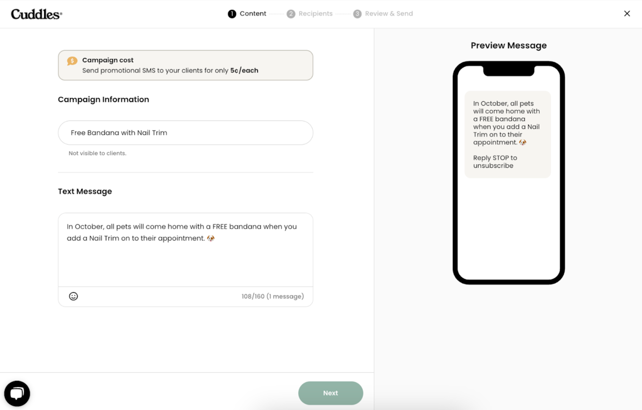 Cuddles offers in-app text marketing so you can connect with multiple clients at once to launch promotions, share new products or services, & provide important updates about your business.