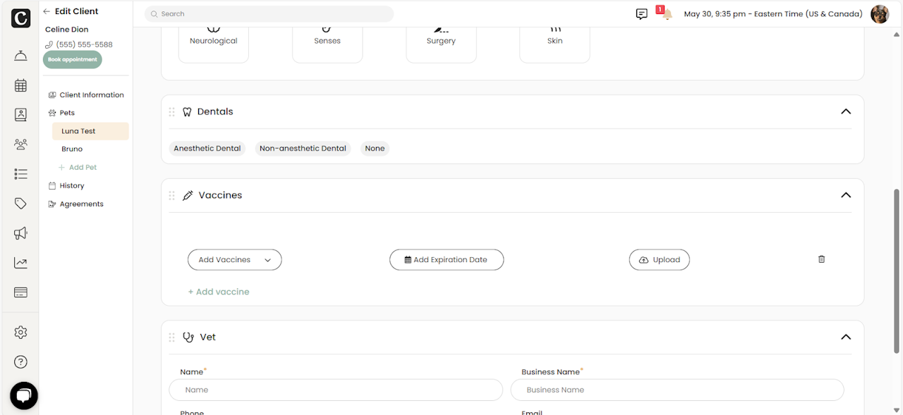 The Client Profile will appear. You’ll see all pets in the family in the left-side menu.